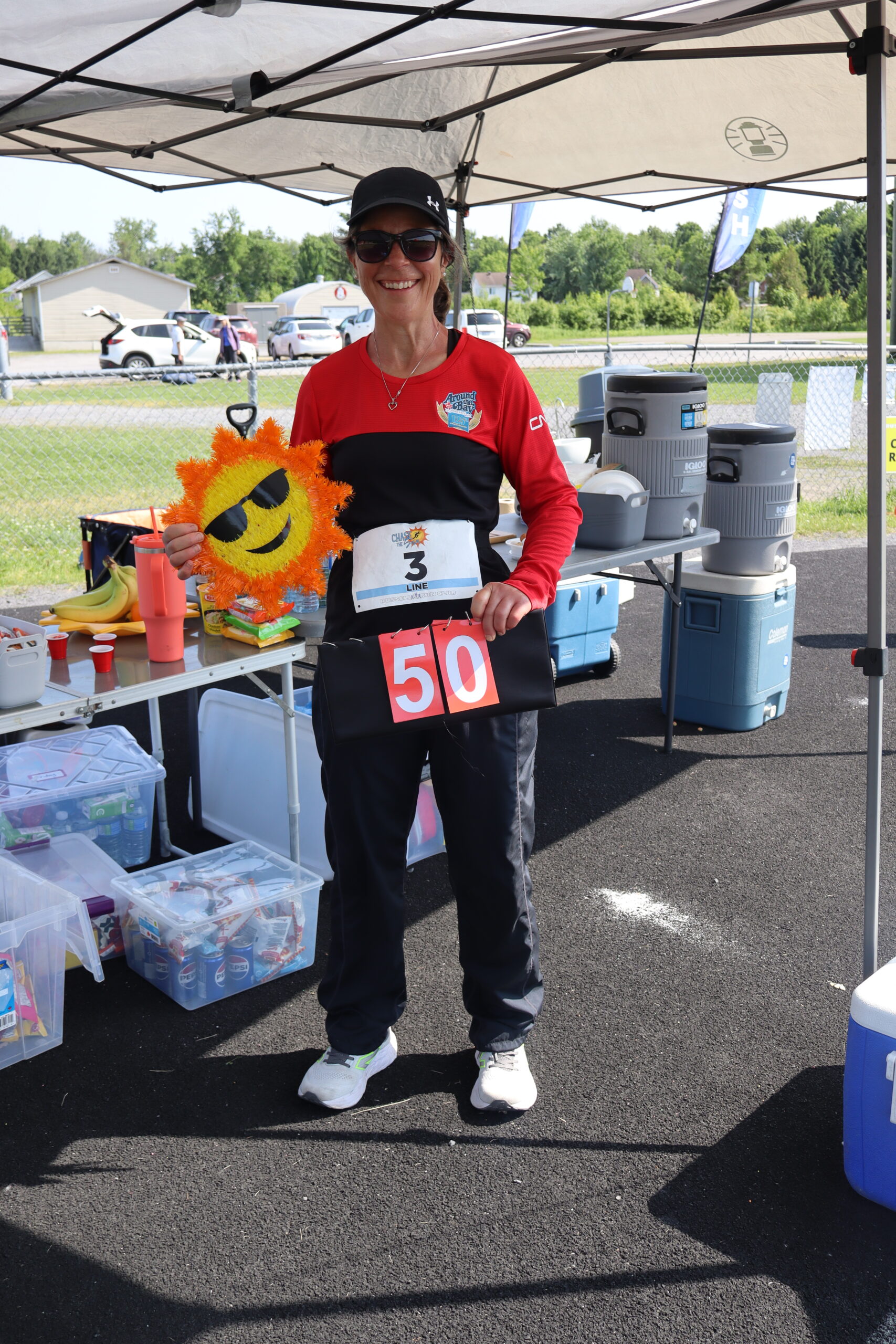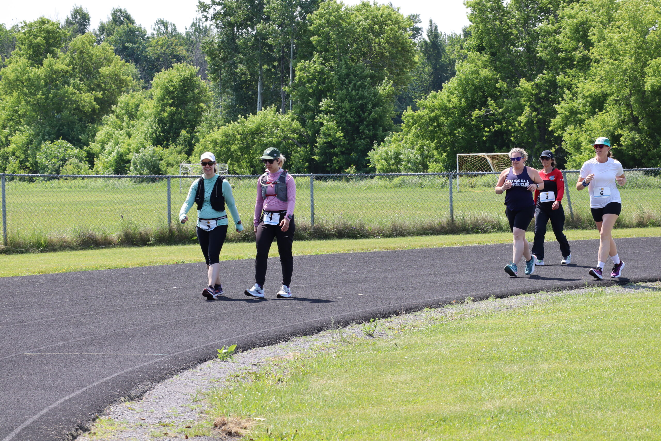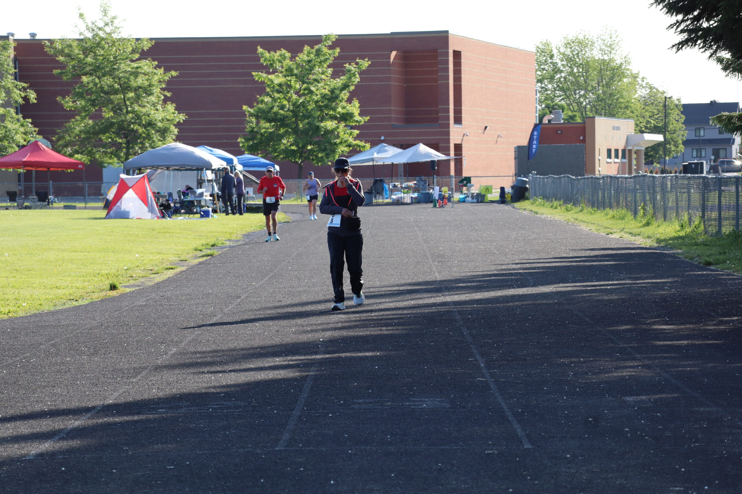Paul & Line were half of the Casselman Dream Team. Line moved peacefully around the track aiming for 50 km, while Paul pushed for 100 km until stomach issues sent him for a nap. He still finished 66.8 km and stayed to cheer her to her ultra.