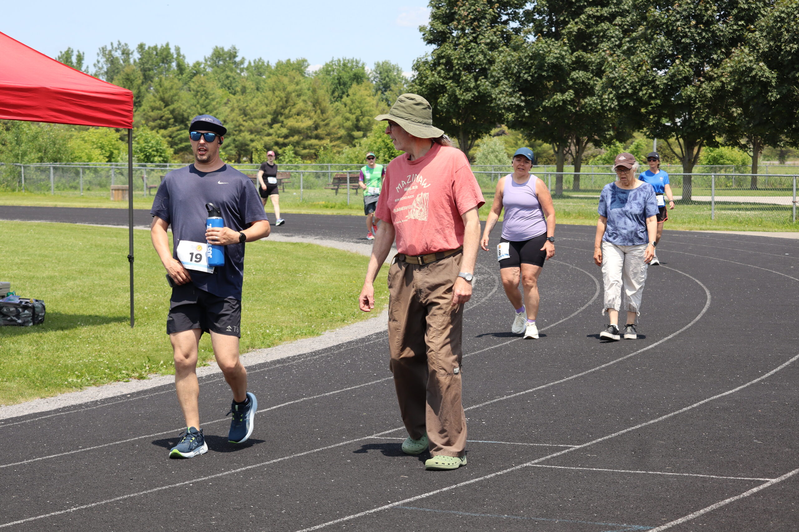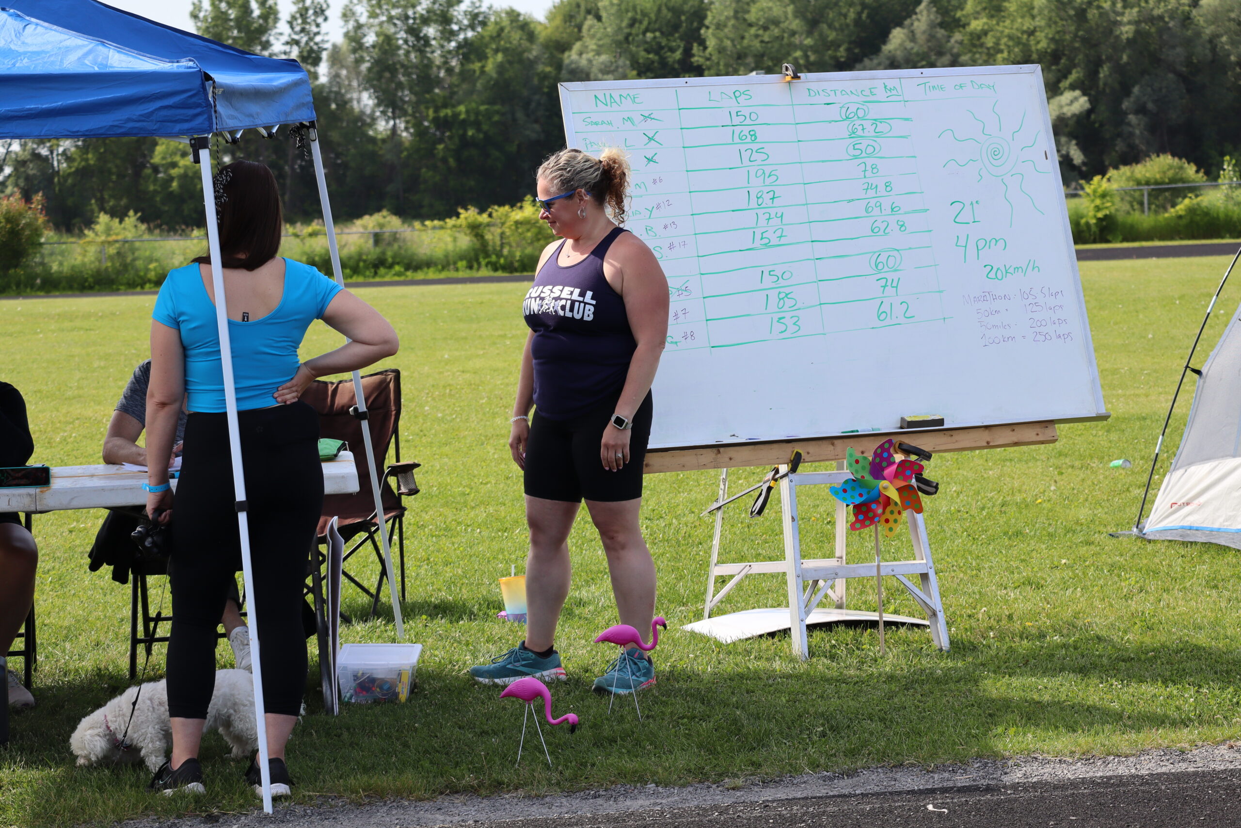 Shiloh & Derrick signed up to have fun and be challenged. Derrick flew around the track, eventually slowing to walk alongside Shiloh when her ankle flared up. They ended at 82.4 and 70 km, still smiling.