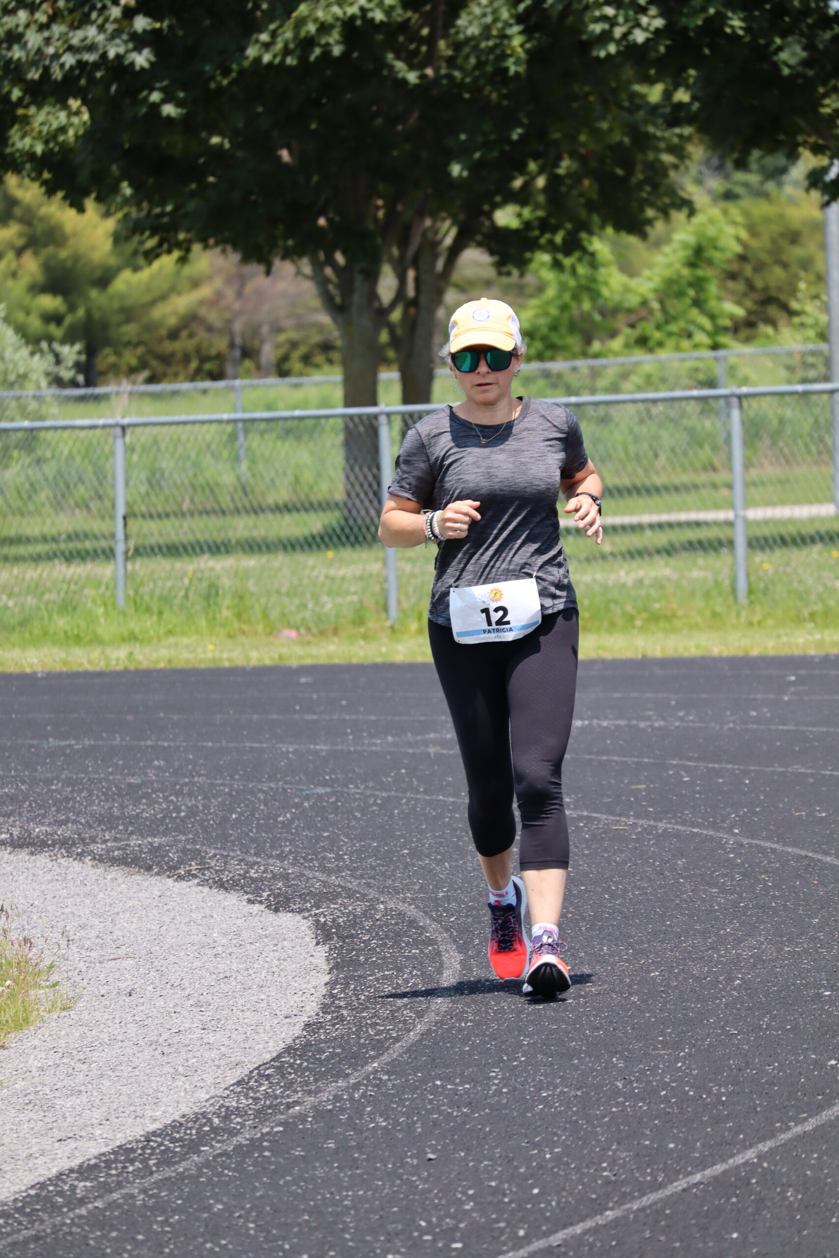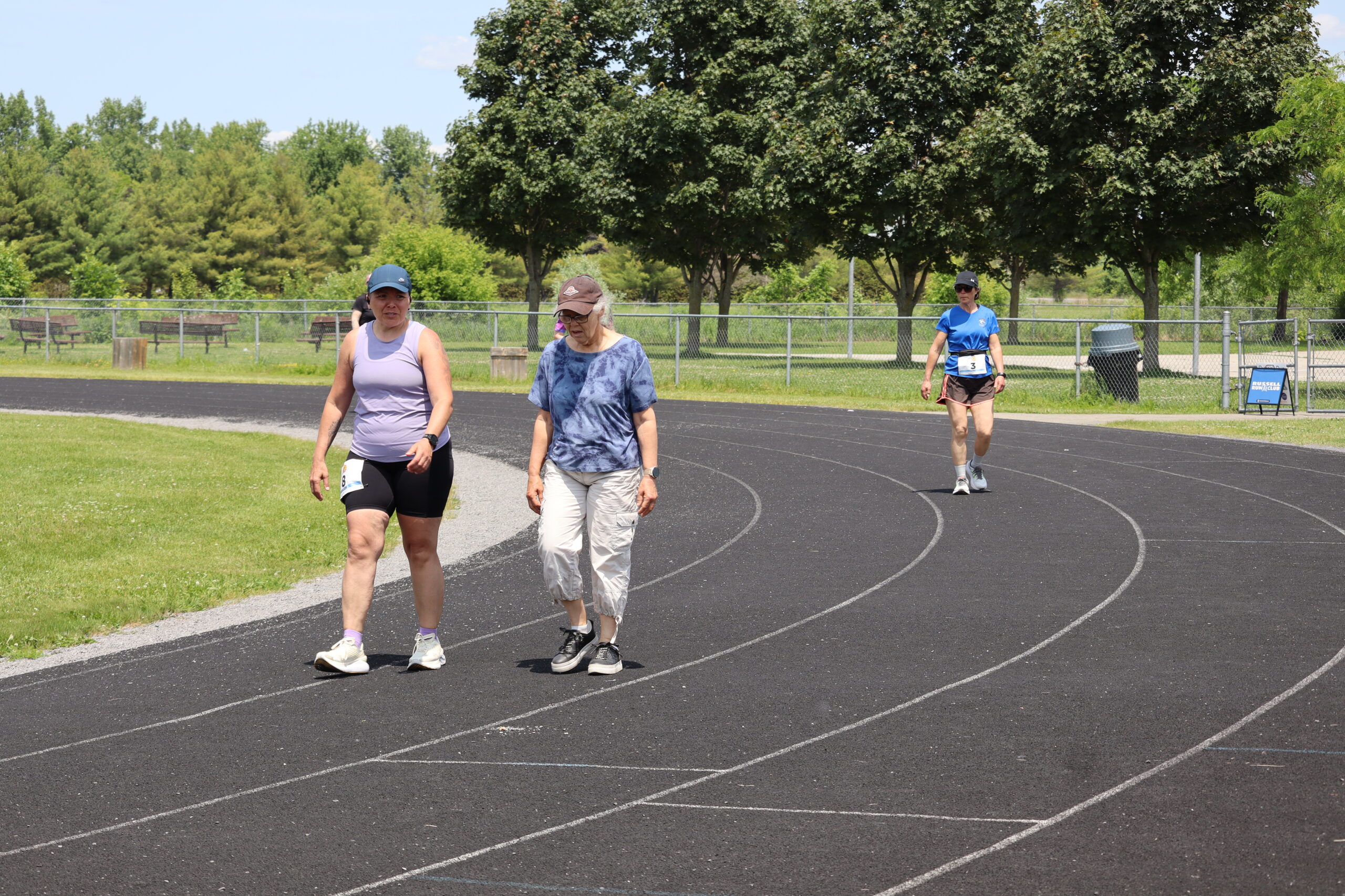 Midday, Clair showed up to volunteer. Honestly, we were pretty well covered by then, but I know how much Clair loves to be active. So I sent her out onto the track to keep the runners moving. In her high school teacher style, she cheered, encouraged, and made sure no one was slacking.