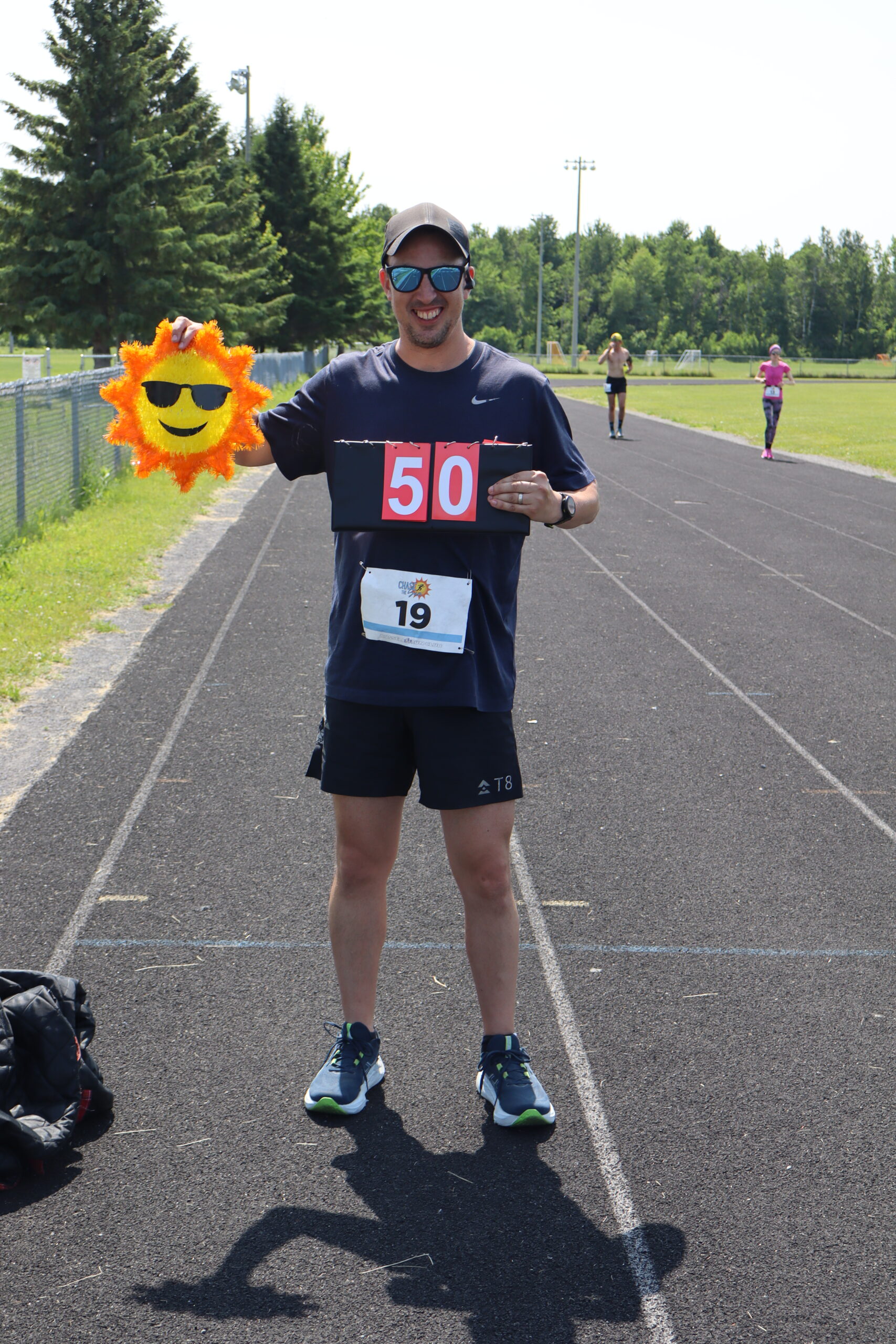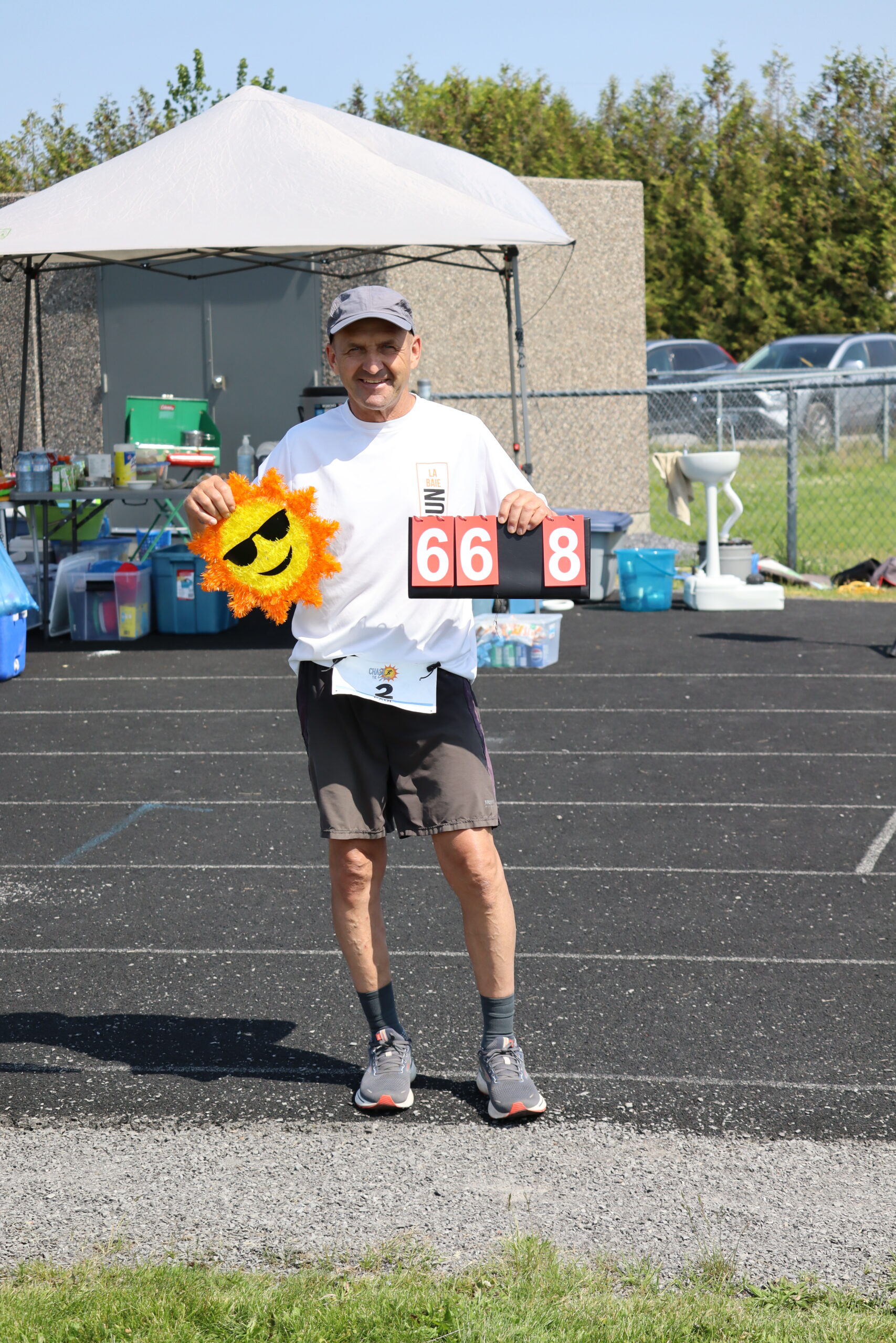Dave arrived in khakis and Crocs, planning to help out. He got inspired, bought a full running kit at Giant Tiger, and casually ran 9.6 km.